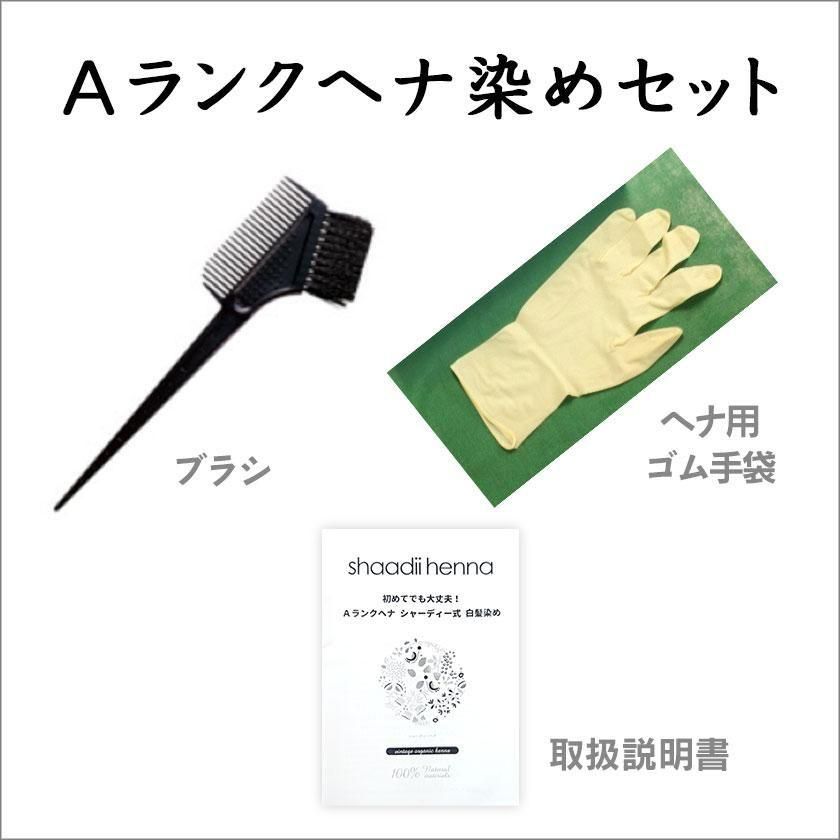 届いてすぐにヘナ染めができるセット。後はヘナを溶く少し大きめのボウルを用意すればすぐに始められるセットです。